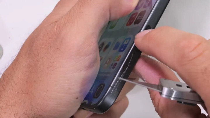 测评首先从屏幕抗刮能力开始。JerryRigEverything 沿用经典的莫氏硬度划痕测试法。当使用代表7级硬度的金刚石划擦屏幕时,iPhone 17 的屏幕表面仅出现轻微、几乎难以察觉的刮痕。而当测试升级到8级硬度,屏幕上才留下了相对明显的永久性痕迹。这一表现与苹果一贯宣传的超瓷晶玻璃防护水准相符,即便是第一代技术,也足以从容应对日常使用中绝大多数尖锐物品的意外刮擦,为用户的屏幕安全提供了可靠保障。